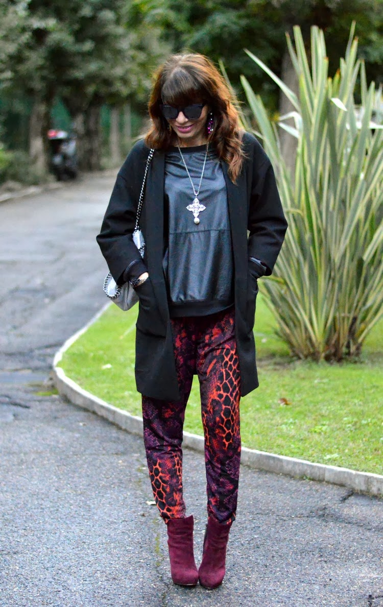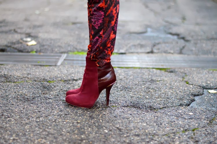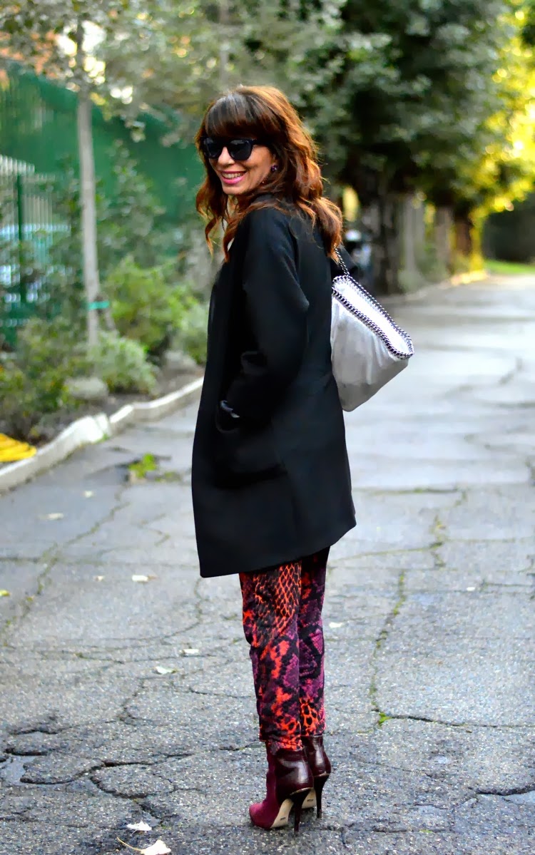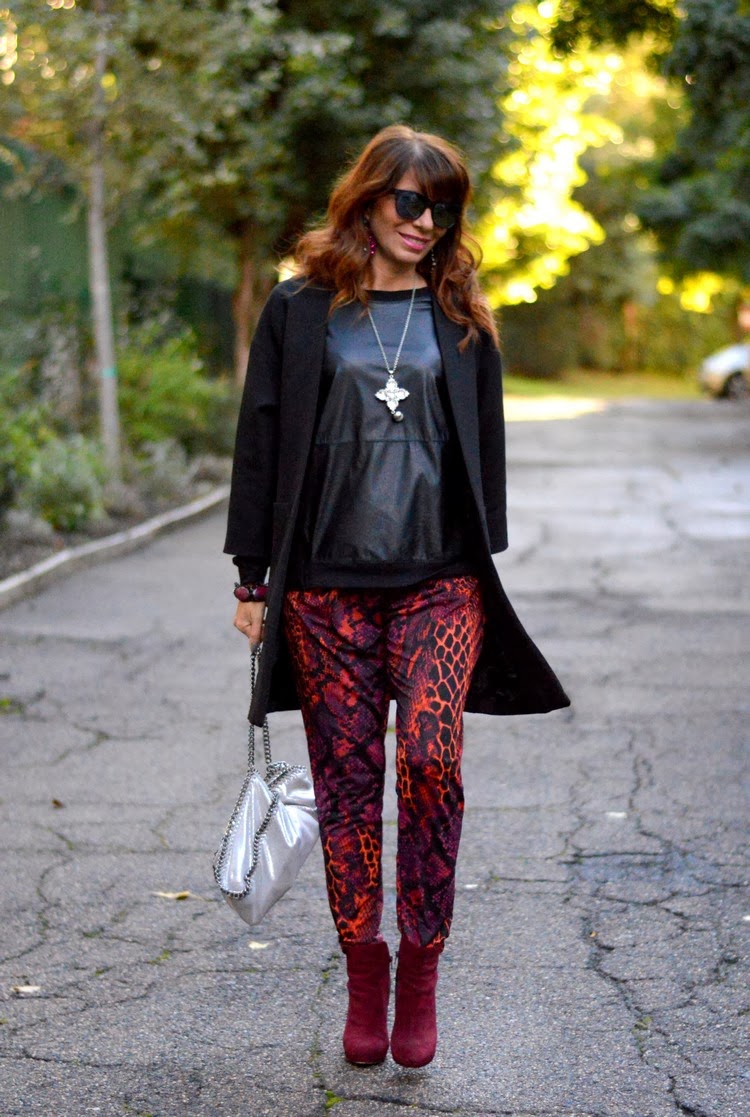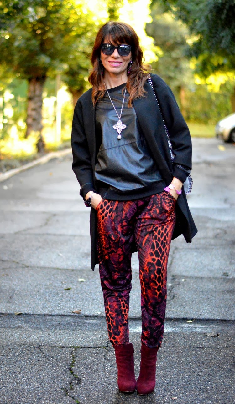 sei stuuupenda! ottimo abbinamento di colori, il fucsia/bordeaux risalta di più accostato al nero e illumina l'outfit! i pantaloni sono veramente bellissimi! baci da mamma e figlia blogger! se ti va passa a vedere il nostro nuovo post http://redhead-blondie.blogspot.it/2013/11/loutfit-indossato-da-blondie-per-il.html