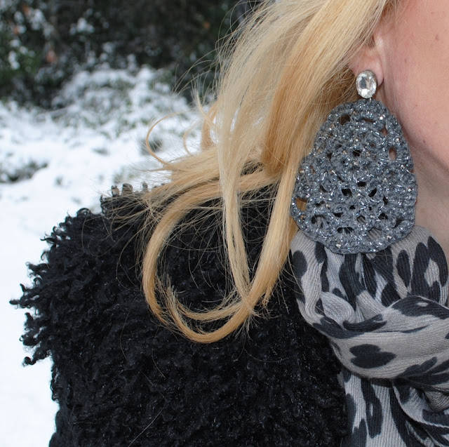 But….it wouldn’t be me without spicing up a little bit this sad under-the-snow outfit, so I have added the new Falabella, a leopard print scarf and these beautiful crochet earrings that I have bought from the Gilla CM store.