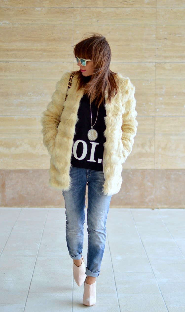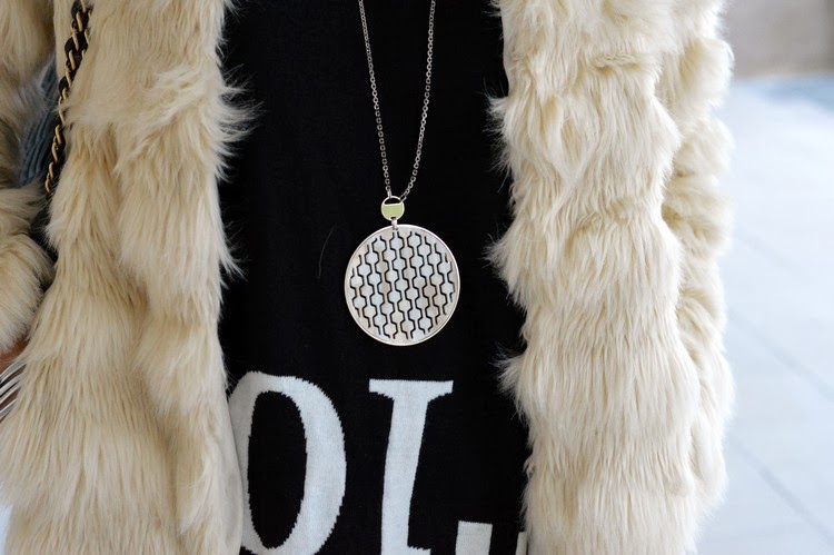 Very cool look! Really like your heels, furry coat but most of all I am in love with that necklace!!! <3