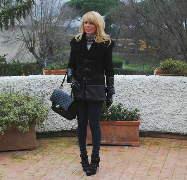 Però mi piace da morire anche il look con la sciarpa/collana e la pelliccia bianca!