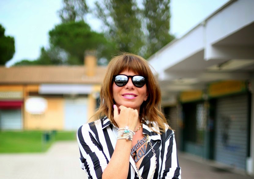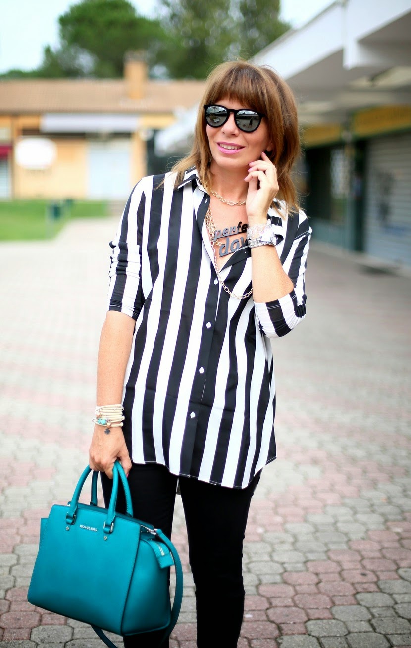 Bellissimo questo abbinamento, la camicia a righe b&w mi manca, mi sa che devo recuperare!!!
