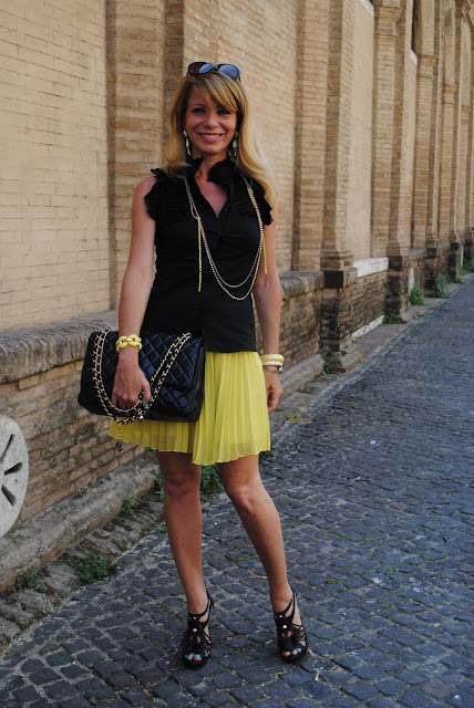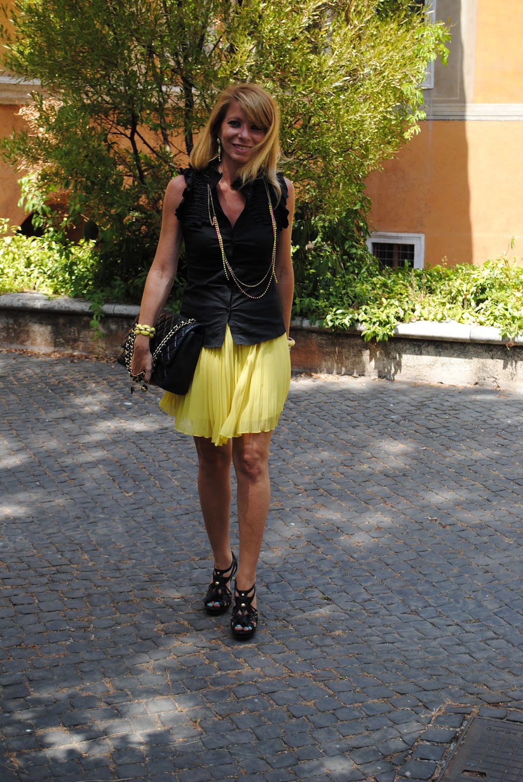 mi piace l'accostamento giallo-nero… lo trovo perfetto e la gonna poi e'fantastica!!!