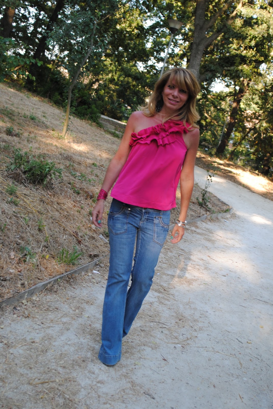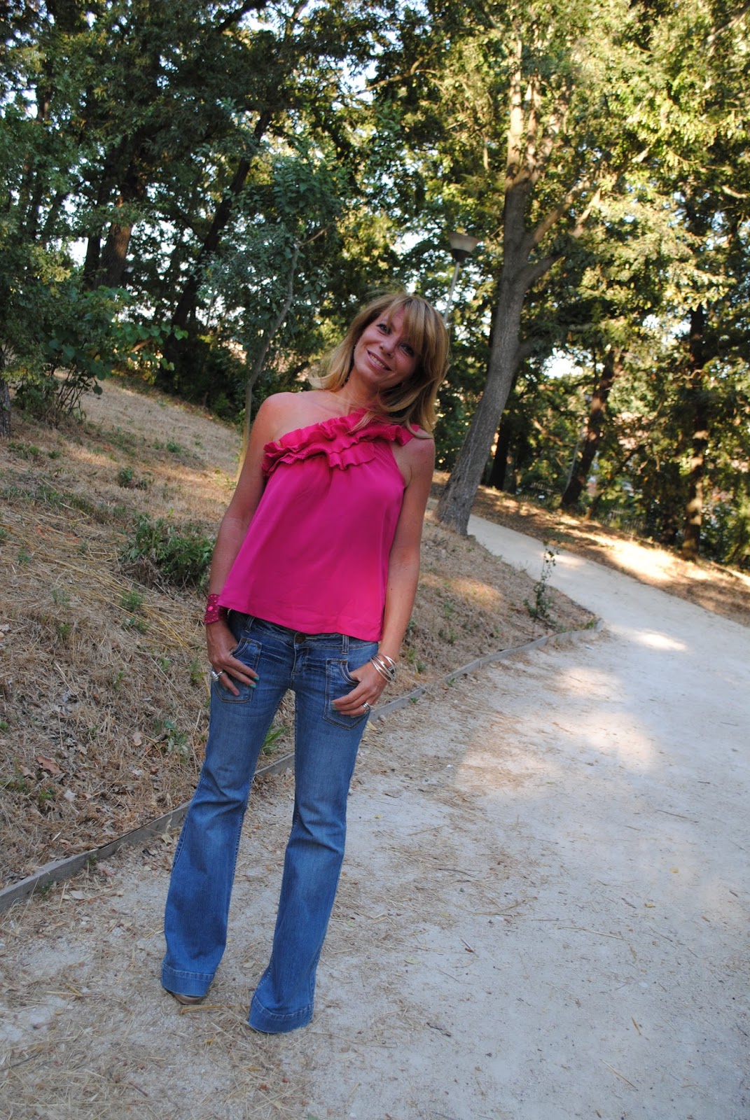 me lo ricordo eccome questo top, lo adoro e ti sta benissimo dovresti usarlo molto ma molto piu' spesso perche' e' proprio bello e poi ripeto il rosa fuxia che e' anche il mio colore preferito ti sta benissimo, troppo carino abbinato ai pantaloni a zampa, non e' un capo che amo ma come li porti tu non li porta nessuno.