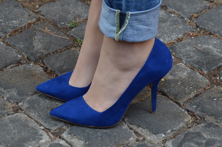 Mi piace come è ben bilanciato cormaticamente questo look: il blu elettrico se non è in color block è difficile da portare, ma a piccole dosi come qui è proprio una marcia in più! Trovo che il modello di scarpa fatto in questo modo valorizzi molto il piede, e apprezzo il fatto che non siano tagliate troppo in basso facendo vedere le dita dei piedi (sarà che ho il disgusto, ma non mi piace proprio da vedere :°D ).