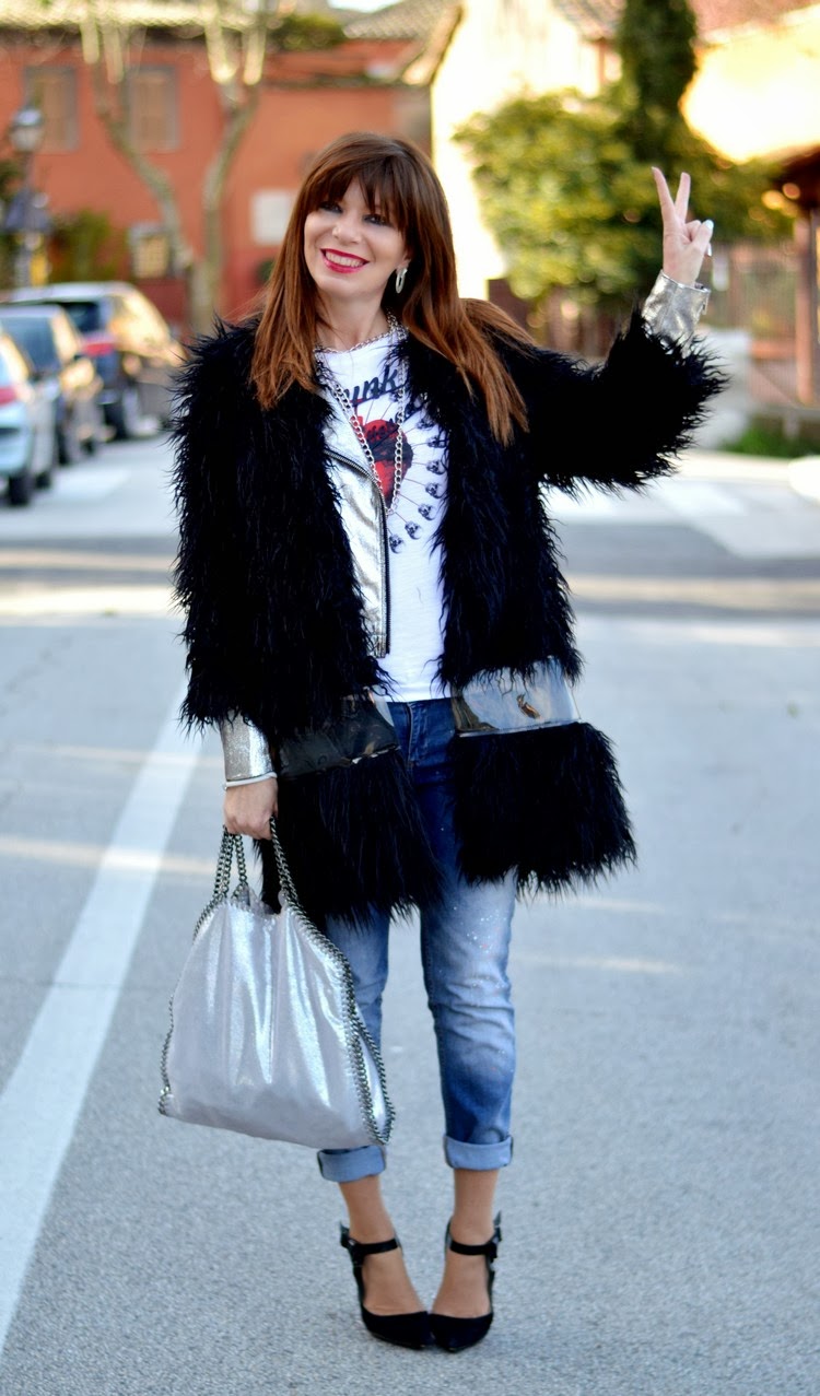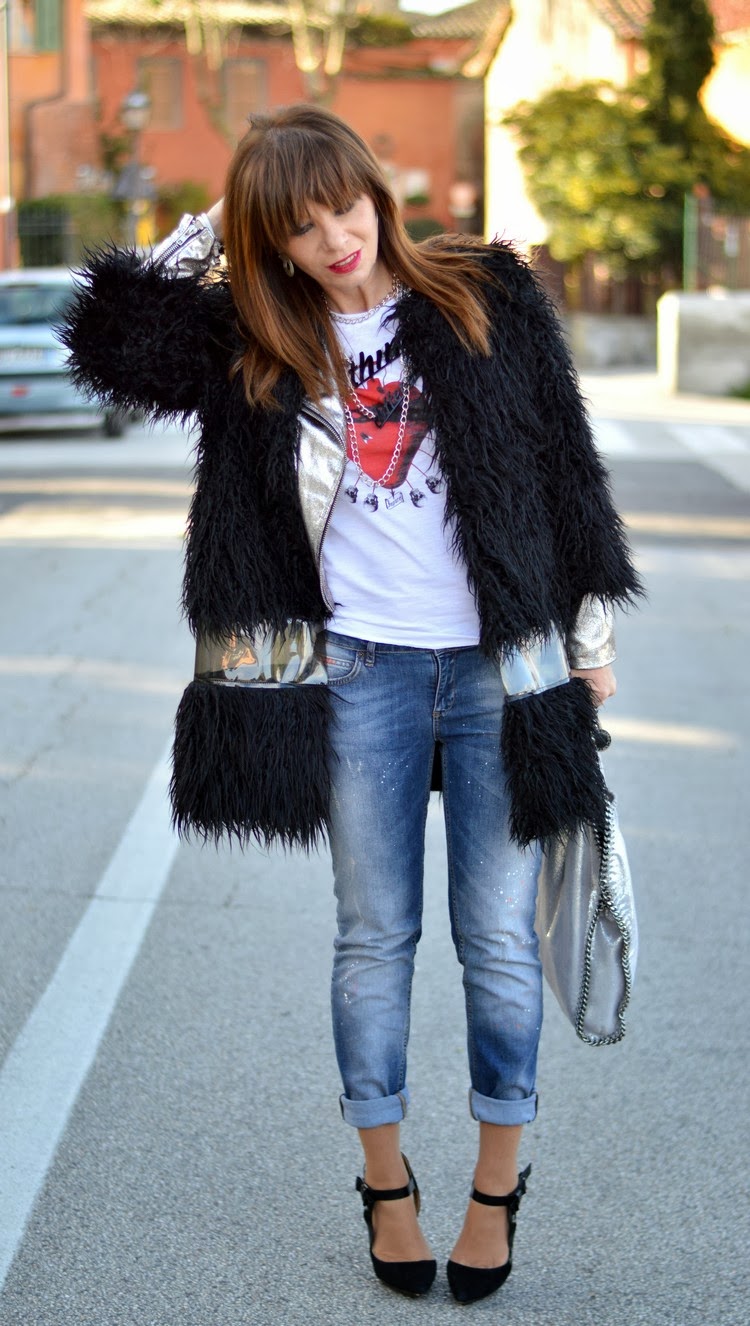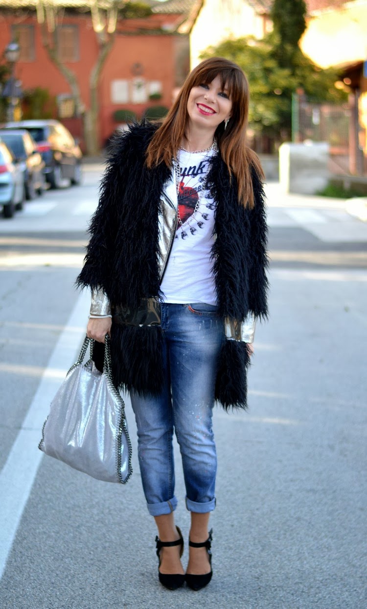 Stai davvero bene in versione rocker! Molto carina la pelliccia eco 😀