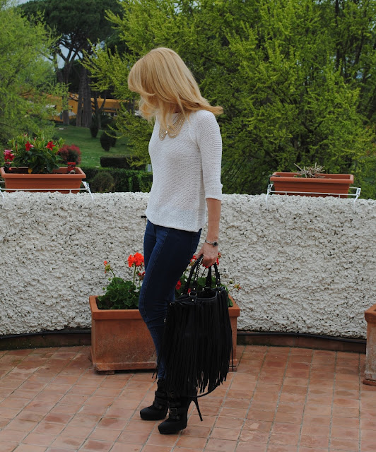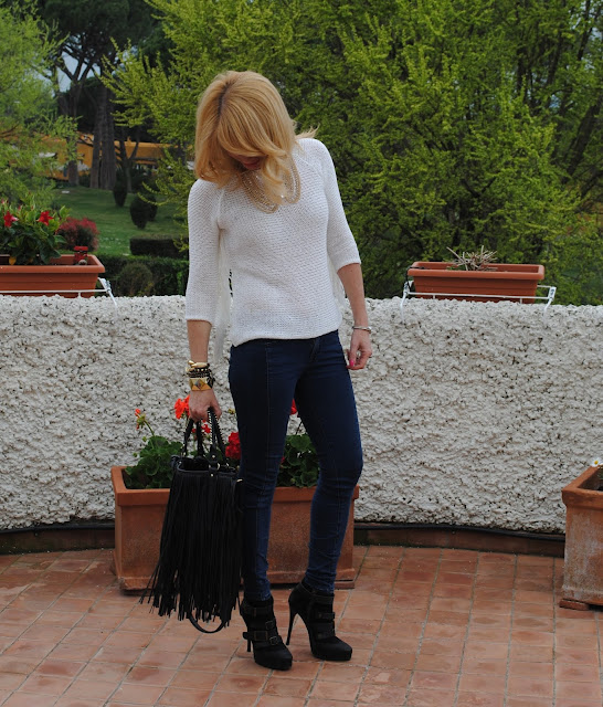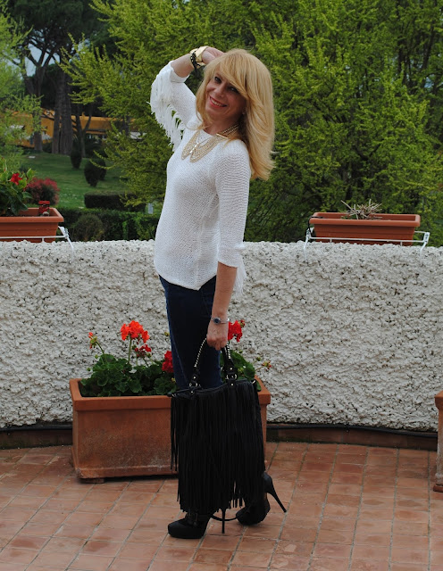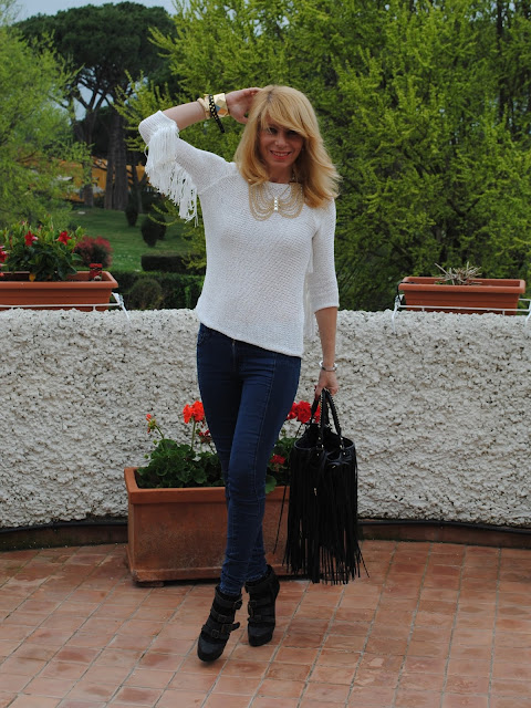 Non mi fanno impazzire le frange della maglia, però l'outfit mi piace! Buon week end Francesca.