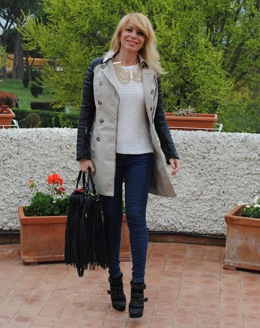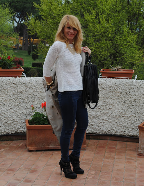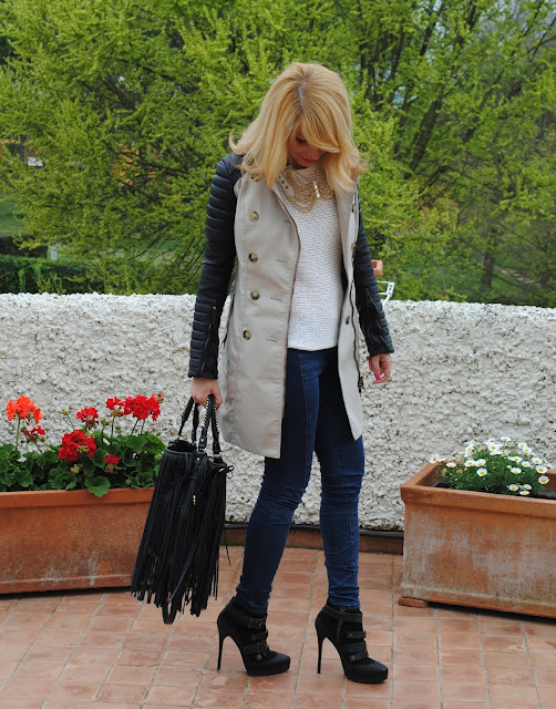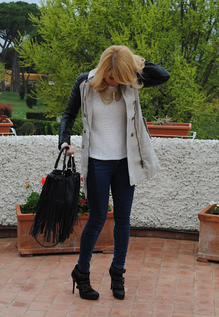 Bellissimo il trench! Le frange le preferisco sulla borsa, rispetto al maglione 😉