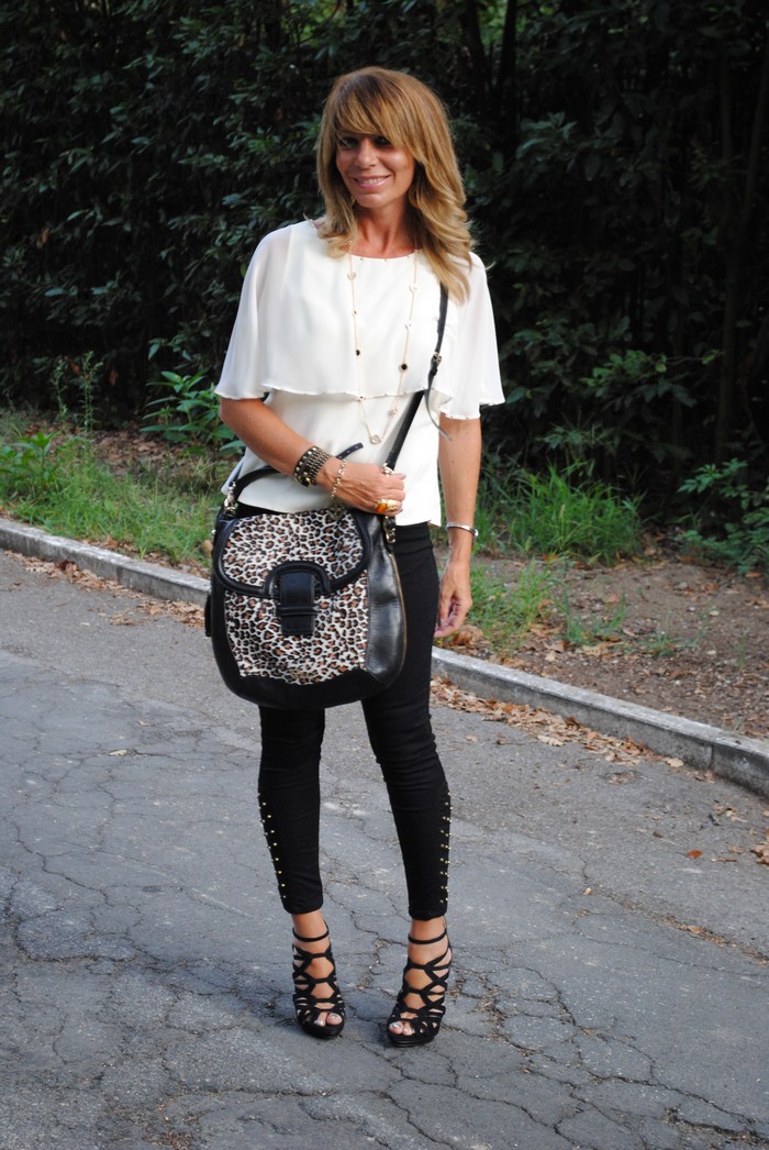 adoro come hai abbinato la blusa monospalla un pò romantica con gli studded pants che sono molto rock!!! bacioni